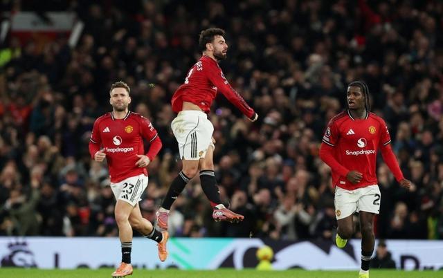 第77分钟,B费站在任意球前,一脚势大力沉的射门直挂死角,3-3,老特拉福德沸腾了!